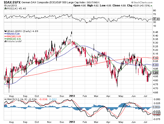 mal ein Währungspärchen. Bin heute Long in AUD/USD gegangen: Der “Aussie” hat eigentlich den Ruf einer Rohstoffwährung. Streng genommen er ist eigentlich aber “nur” die Währung einer großen Rohstoffnation, denn anders als nach Lehrbuchmeinung hat der Aussie keine echte Korrelation zum Rohstoffindex CRB, siehe letzter Chart ganz unten. Was mir beim Blick auf den Chart aber direkt einfiel, ist, dass er zeitlich dieses Jahr eine äußerst gute Übereinstimmung mit den US-Bonds hat. Hier ein Ratio-Chart: Wenn Read More …