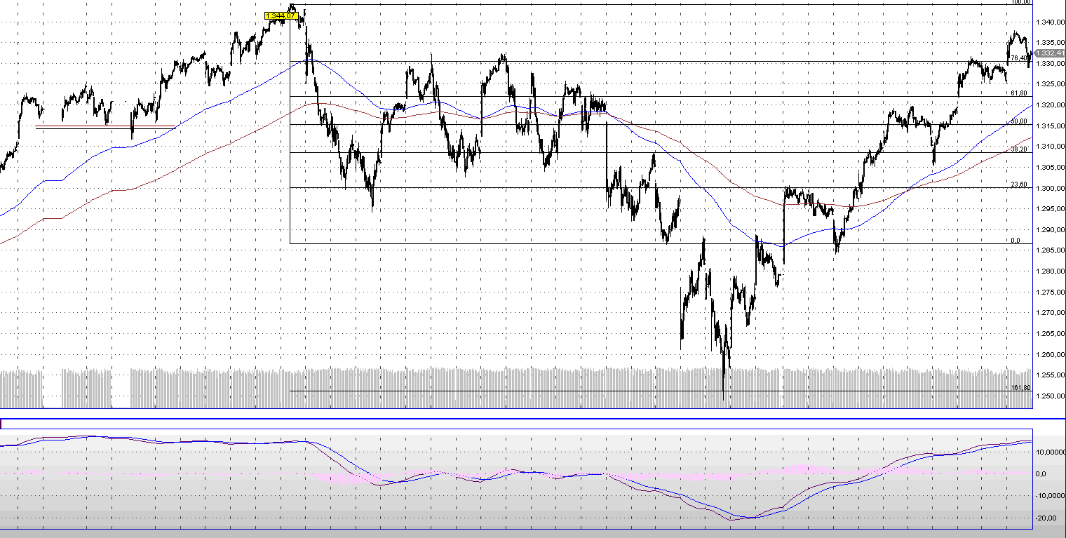 Ich schaue insbesondere auf den Bereich 1320-1315, da sich dieser Bereich in der Vergangenheit bewährte, siehe Februar. Ich habe diese Zone im Chart links kenntlich gemacht.
