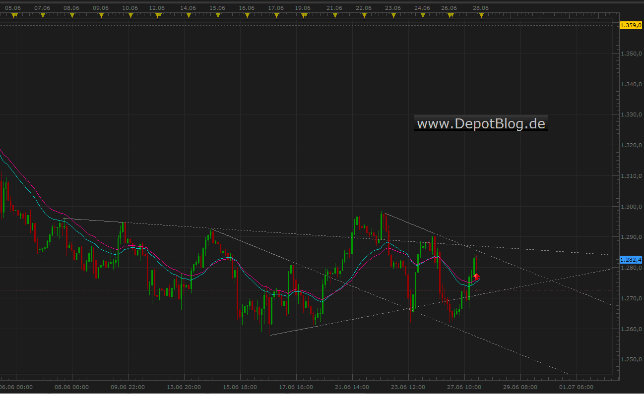 Der S&P muss diese Hürden in Form der 2 Diagnoalen noch nehmen und sie sammeln sich bei 1286 wie im Chart schön zu sehen ist.