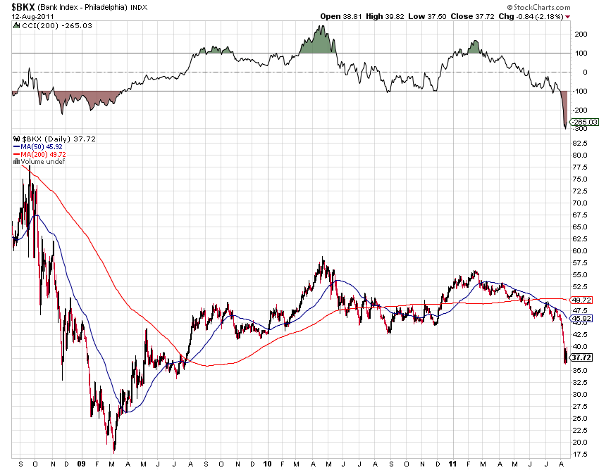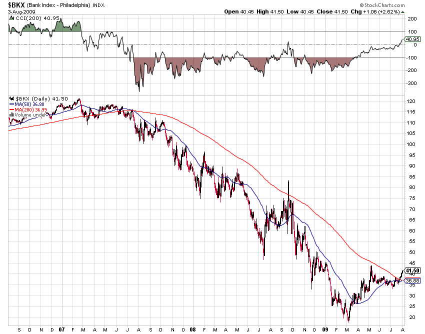 Und wie sieht es heute aus? Hier der Bankenindex seit Crash-Ende 2009:
