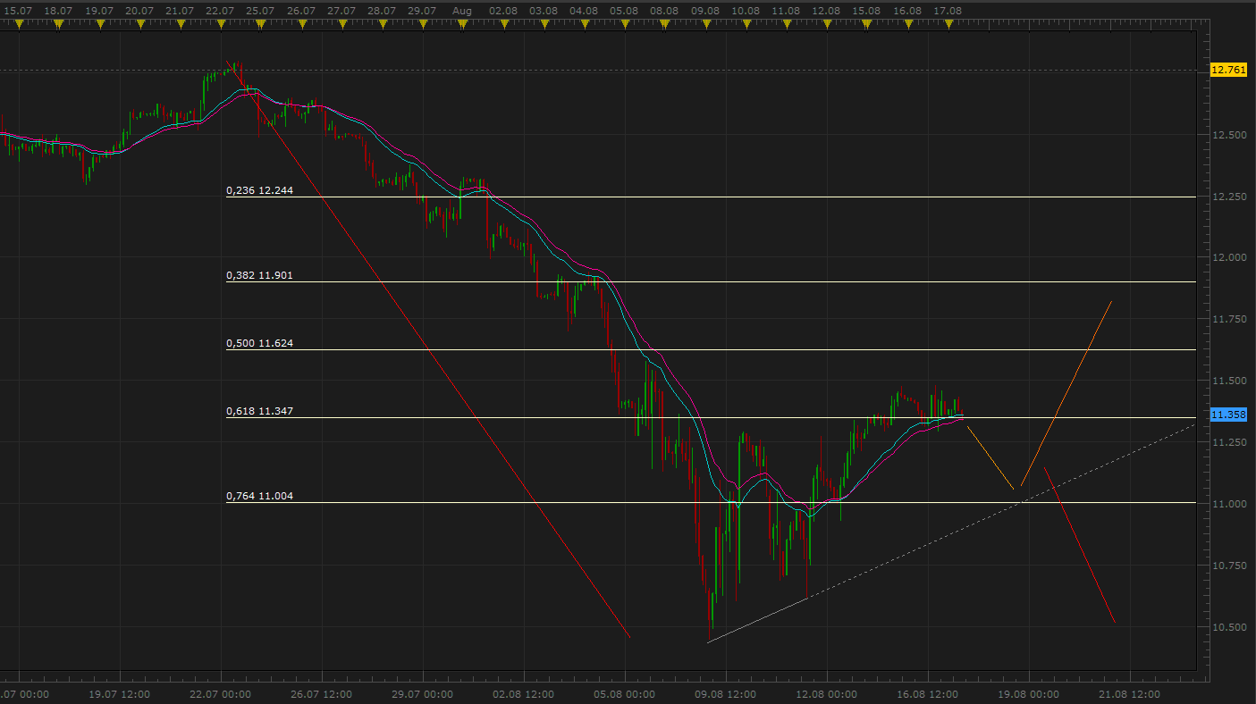 Für meine Sicht ist der Bereich von 1180-90 aus Bullensicht wichtig, dass er hält. Man sieht deutliche Bremsspuren aber bereits, daher der short.