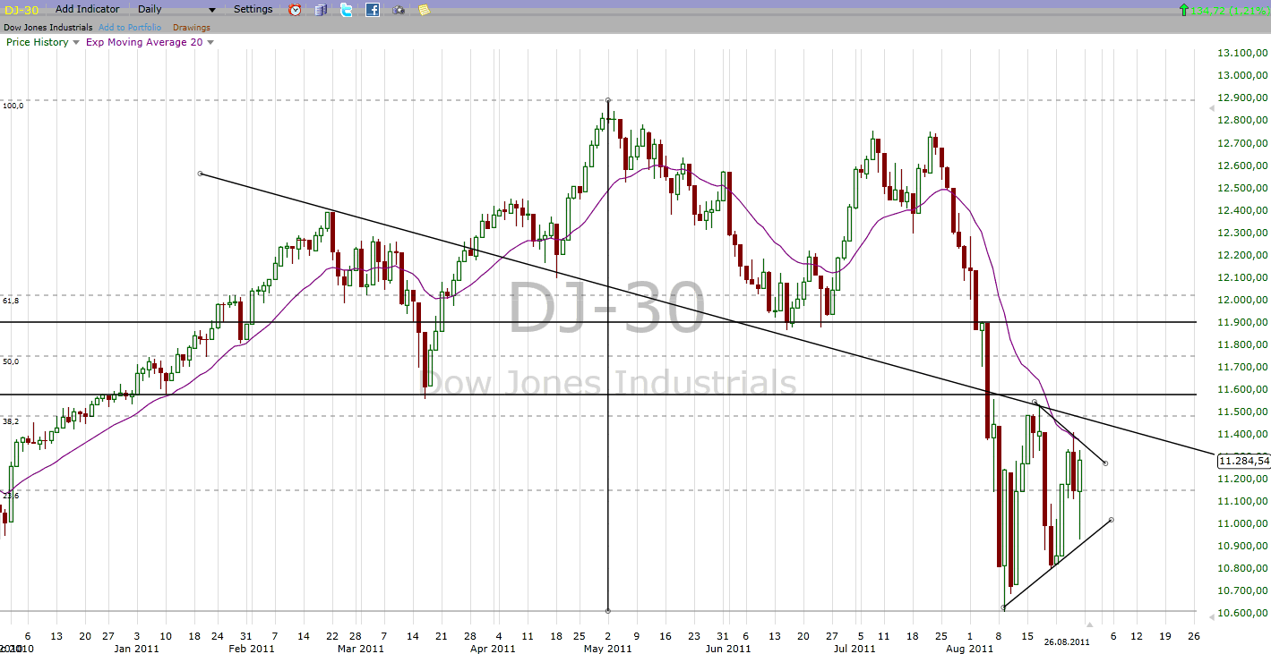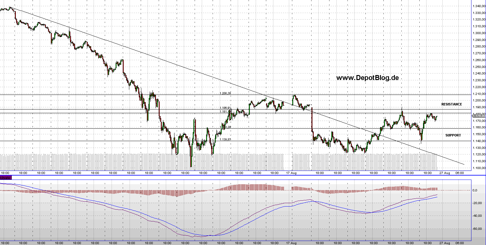 die Reaktion auf die NFP Rolls werden es sein, die uns sagen ob schon bei 1180 Schluss ist oder nicht. Rein technisch ist die Reaktion am Kreuzwiderstand DowJones 11.550 schon zu schön. Das hat Potential auch für ein neues Low im Bereich von 10.000 und tiefer.