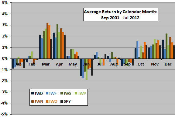 Die Schwäche ist in sofern alarmierend, als das der Dow immer die führende Rolle im Vergleich zum SPX spielt, z.B. erzielt der SPX in der Regel ein Paar Tage später ein High wenn der DowJones zu neuen Höhen schießt. Dass also die 30 großen US-Firmen schwächer tendieren, ist wahrscheinlich ein Zeichen dafür, dass große Fonds und institutionelle Anleger vermutlich ihren Cash-Bestand hoch fahren oder umschichten. So zumindest würde ich das interpretieren und so wäre es auch in meinen Augen logisch vor dem “Katastrophen-Monat” September, in dem kein erfahrener Anleger mit vollem Depot unterwegs sein möchte. Hier mal ein Monatsvergleich als Bar-Chart, bei dem zu sehen ist, dass in jüngster Zeit nur der Juni schlechter abschneiden konnte. Würde man die Datenbasis erweitern, sähe das noch schlechter für den September aus…
