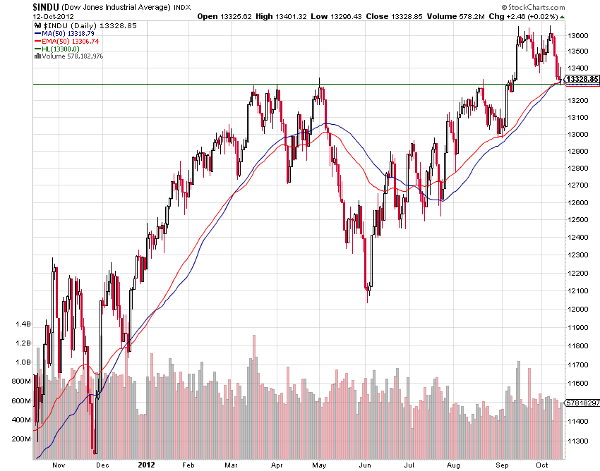 Auch im INDU findet sich ein mehrfacher Widerstand, sowohl vom 13300 Level aber auch durch die Moving-Averages.