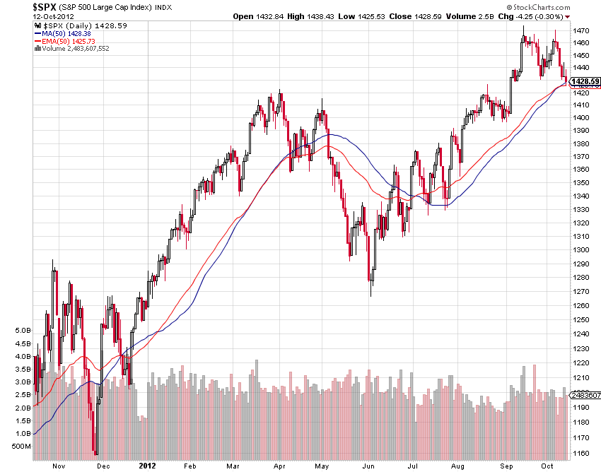Die “Fuffziger” im Daily sind von einer großen Masse beachtet. Der Marktverlauf am Freitag zeigte bereits, dass sie beachtet werden, denn die starke Korrektur wurde gestoppt und es zeigte sich eine NRB (narrow-range-bar, Kerze mit schmalem Körper). Ich rechne mit guten 100 Punkten auf der Long-Seite im INDU, vielleicht werden es mehr. Es sollte doch mindestens ein 50% Retracement werden. Das Risiko aber ist aufgrund der Quartalsberichte hoch, daher alles nur mit angezogener Handbremse.