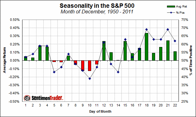 Der kommende Montag ist Tradingtag 6. Saisonalität (muss man dieses Jahr vorsichtig betrachten) ist negativ bis einschließlich Montag (16.12) darauf. (Quelle: http://www.cobrasmarketview.com/wp-content/uploads/Seasonality-by-Month-and-Day_EE82/seasonality_december.gif)