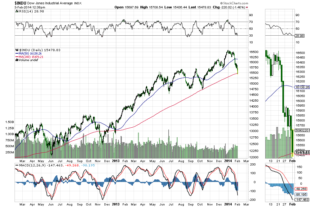 Der Markt beachten den 200er MA beim DowJones! Aus meiner Sicht sind das schon genügend Gründe das extrem(!) starke Momentum zu stoppen. Ich bin Long positioniert auf eine Wette eines 50% Retracements seit Januar Hoch. Glaube, wie schon gesagt, dass da noch durchaus was kommt nach unten, aber vorerst sollte es das gewesen sein.