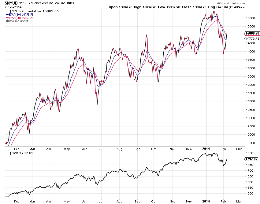 4. Die “breath” Daten sind auch noch nicht bullish genug für einen erneuten Angriff auf das ATH. Hier am Beispiel des Auf- & Abwärtsvolumens