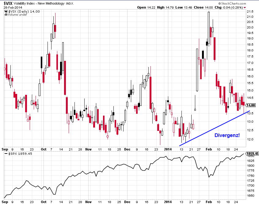 Hier mal eine Bestätigung des VIX, der trotz neuer highs im S&P deutlich von seinen lows entfernt ist: