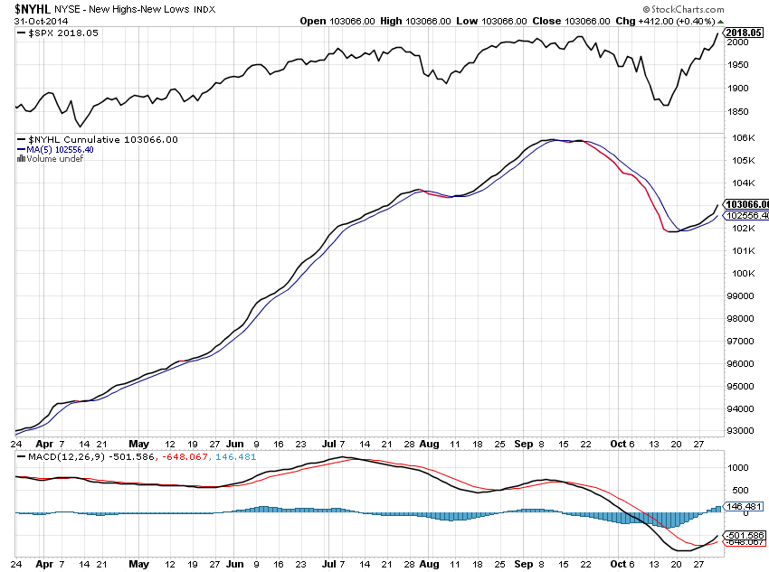 1. Die Zahl der 52-Wochen Hochs ist wieder höher als die der Tiefs seit dem 20.10. Es steigt!