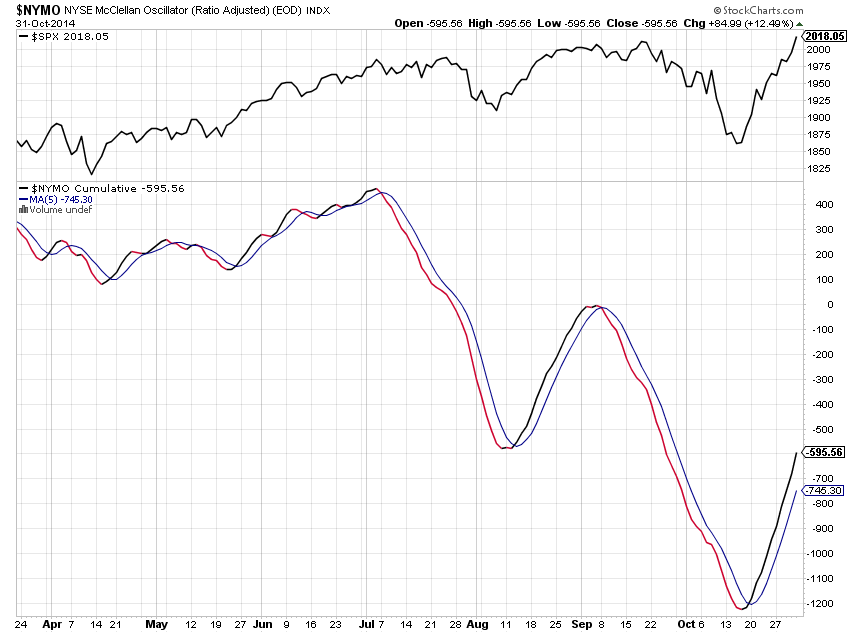 2. Der NYMO hat wieder herrlich das Top und Low erwischt (und steigt!). Bevor dieser Kollege nicht bärisch kreuzt, braucht man keine Sekunde über shorts nachdenken: