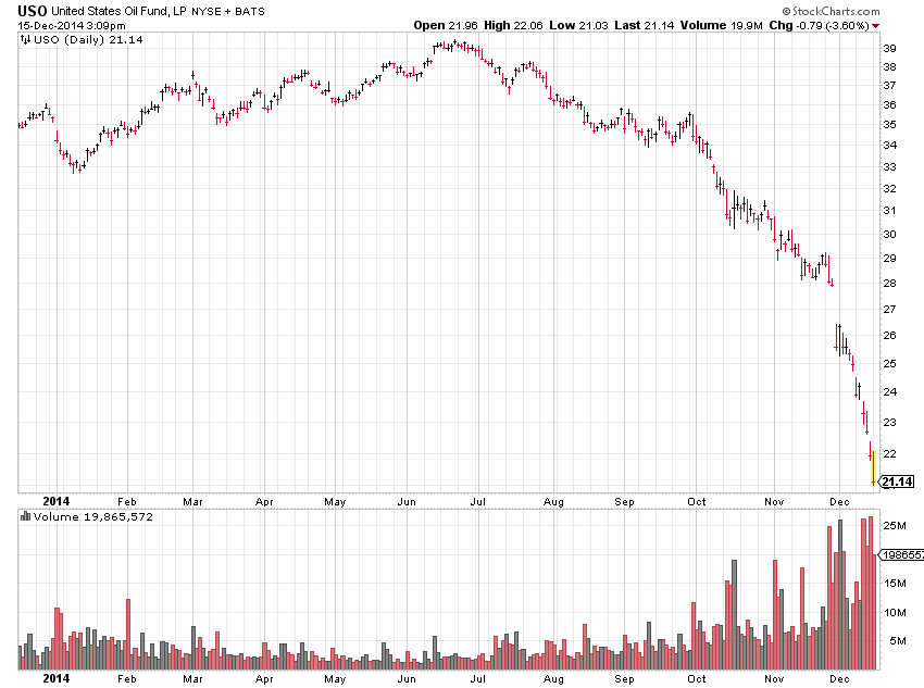 Interssant ist für diesen Handel vor allem das Volumen in USO die vergangenen Tage, welches für mich ein Top-Indikator für eine Bodensuche darstellt: