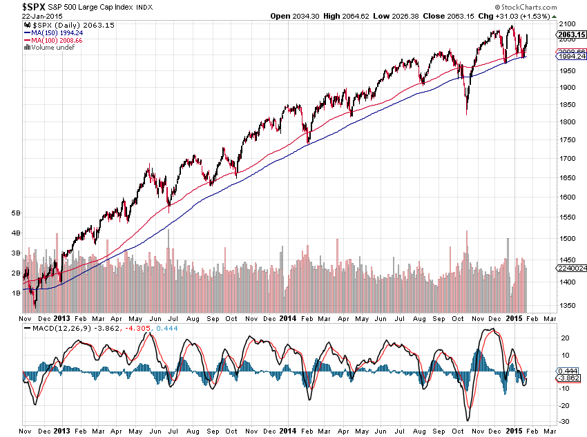 Ich bin auch bullish solang dieses Muster des S&P500 Gültigkeit hat (d.h. solange die Kurse oberhalb vom MA100 / 150 sind: