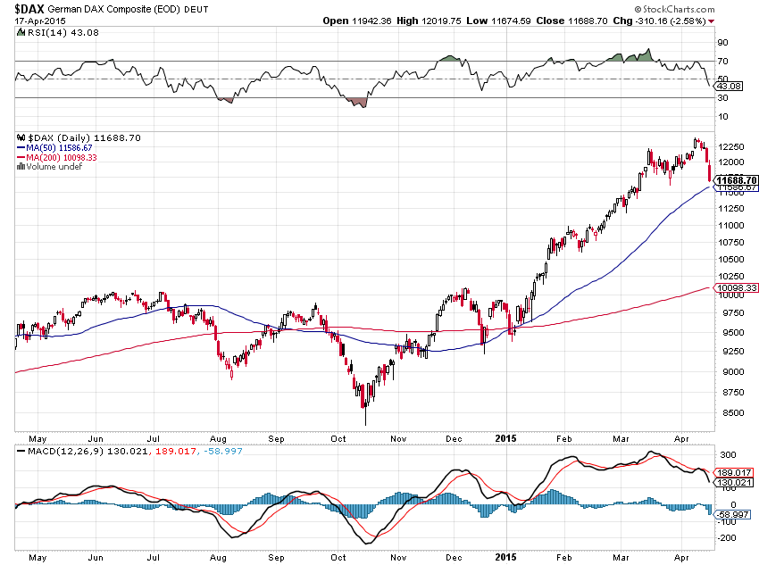 Apropos. Warum einfach nicht noch aufspringen auf den Down-Zug am Montag? Hierzu der folgende Chart, der folgendes verdeutlichen Soll: Bei ca. 11.586 Punkten liegt der MA50, der in der Vergangenheit immer wieder ein guter Support war. Mit einem Short bei einem Kurs von 11.688 hat man also knapp 100 Punkte Chance bei einem unbegrenzten Risiko falls es eine Gegebewegung gibt. Ich sehe jedenfalls nicht wo ich einen sinnvollen Stopp nach oben setzen kann, der kleiner ist als diese 100 Punkte um ein positives Chance-Risiko-Verhältnis zu bekommen… Ein Short kommt so leider nicht (mehr) in Frage – das Short Signal ist dahin.