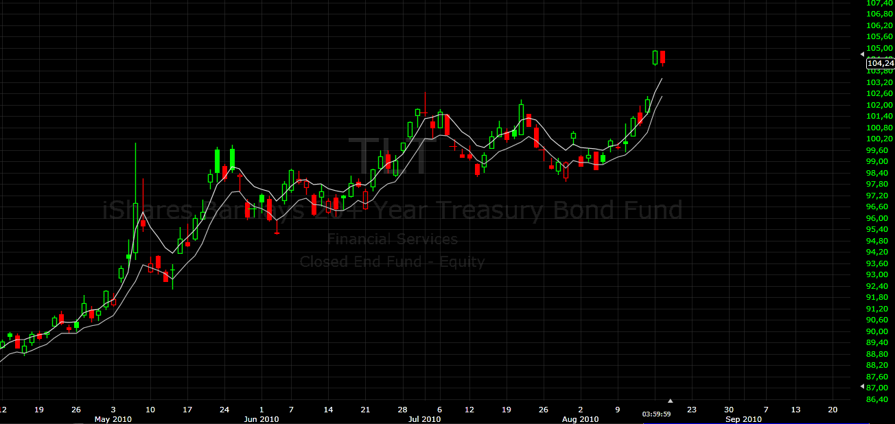 und das nicht nur in den Staaten. Heute hat der TLT (vereinfacht: ein ETF auf den 20 Jahre Bund der Staaten) eine nette Formation gebildet, die mich dazu bewegte vorsichtig Positionen aufzubauen. Schaut selbst