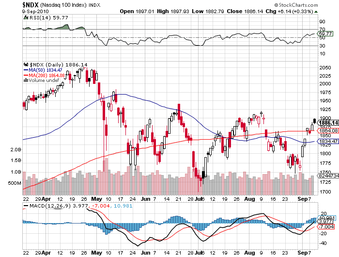 und zwar der NDX. Hier der Daily. Eine nette schwarze Kerze deutet darauf, dass ein Upgap zum Verkauf genutzt wurde: