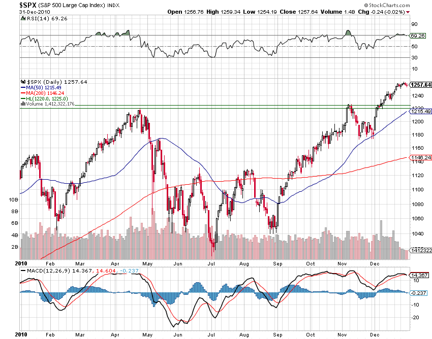 Zu aller erst möchte ich mich bei Euch allen für das Lesen des Blogs bedanken. Es hat mich total gefreut, dass sich der Blog immer mehr zum Austausch von Meinungen und Hinweisen auf Fehler sowie gegenseitiger Hilfe gewandelt hat. Dafür nochmal 1000 Dank! Wir werden auch in 2011 Gas geben und ich bringe in diesem Jahr eine Änderung mit meinem Market Call (ab So. Abend online) und hoffe, dass ich damit dem ein oder anderen im Nebel der Börse zumindest einen Orientierungspunkt geben kann.