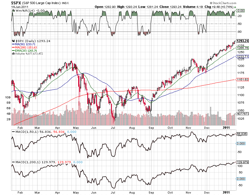 Für die nächste Woche – Montag ist übrigens handelsfrei in den USA – erwarte ich einen Test der psychologisch wichtigen Marke von 1300 im S&P500. Bei 1299 befindet sich eine wichtige Fibo-Ext. (siehe letzter Post) und es ist davon auszugehen, dass Bären in Boot kommen könnten. Vielleicht versuche ich es dort mit einem antizyklischen kurzen Trade gegen den Trend wenn ich sehe, dass dort Schwäche aufkommt. Die Preise sind zum jetztigen Standpunkt zu weit weg von den gleitenden Durchschnitten, das soll der folgende Chart zeigen: